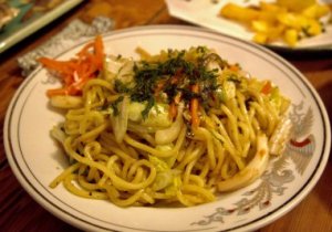 新島のご当地グルメ「赤いか焼きそば」を、当店ならではの塩味にしたオリジナル料理。