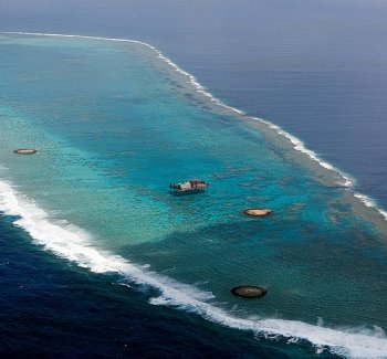 東京から1740㎞南の太平洋上に浮かぶ沖ノ鳥島は、東西4.5㎞、南北1.7㎞の小さな島ですが、日本の陸地面積よりも広い約40万㎢の排他的経済水域を支えています。