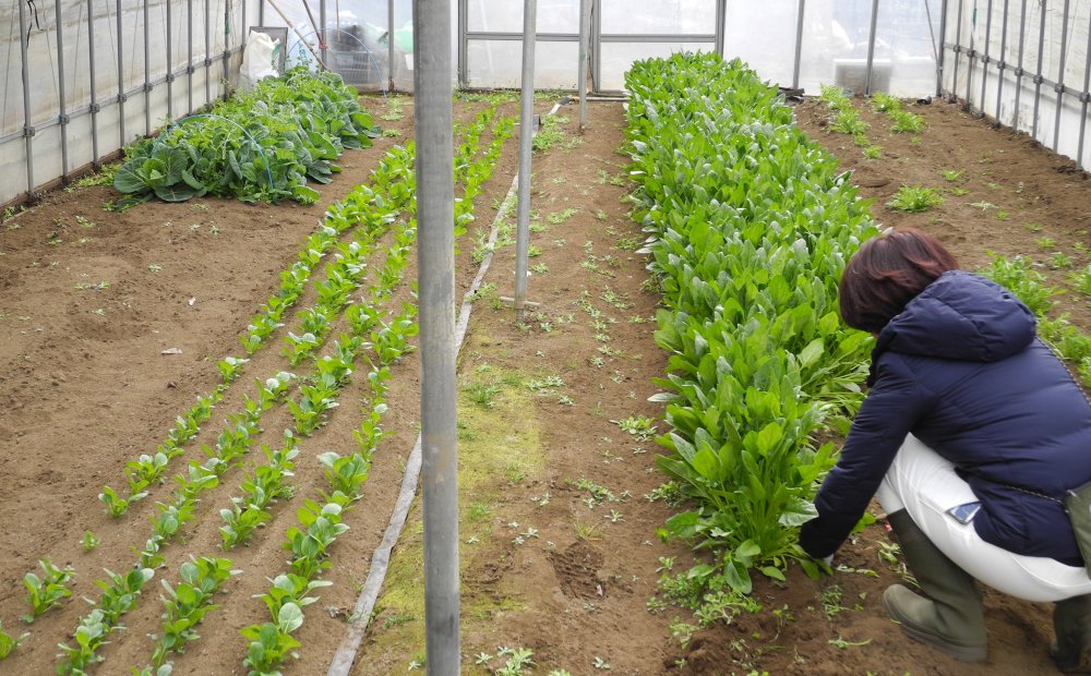 収穫期には庭先で季節の野菜を販売しています。9時から12時ごろまでの販売になります。収穫体験やミニ農業体験なども行っています。