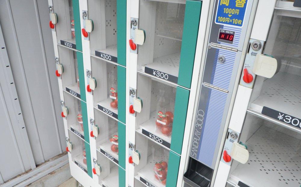 練馬区の大泉学園町でトマトを栽培しています。ヤシガラ培地の養液栽培で育てられたトマトは、甘みもコクも格別と評判です。朝にはコイン式の販売機すべてに入っていても、午後3時には売れ切れてしまうとのことです。練馬区立大泉図書館のすぐそば、ぜひお立ち寄りください!