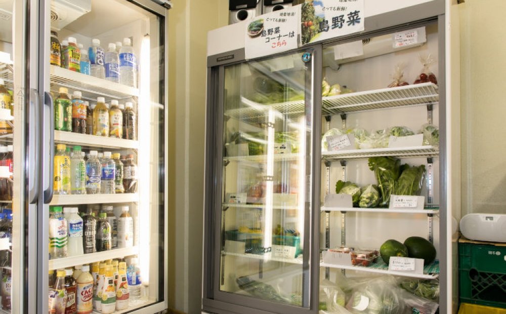 JA小笠原母島支店の売店。日用品の他、島の農産物が並びます。父島や本土では手に入りにくいミニトマトや新鮮な野菜をお買い求めいただけます。おがさわら丸の入港に合わせて母島に接続される船で入荷する品物もあります。