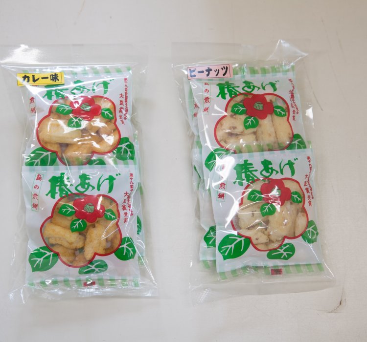 その他 大島名物の椿油で揚げたオレイン酸たっぷりのおかき。小分けになっているので、おみやげに最適です。塩、しょうゆ、胡麻、カレー、あまから、ピーナッツ、玄米、などの味から選べます。