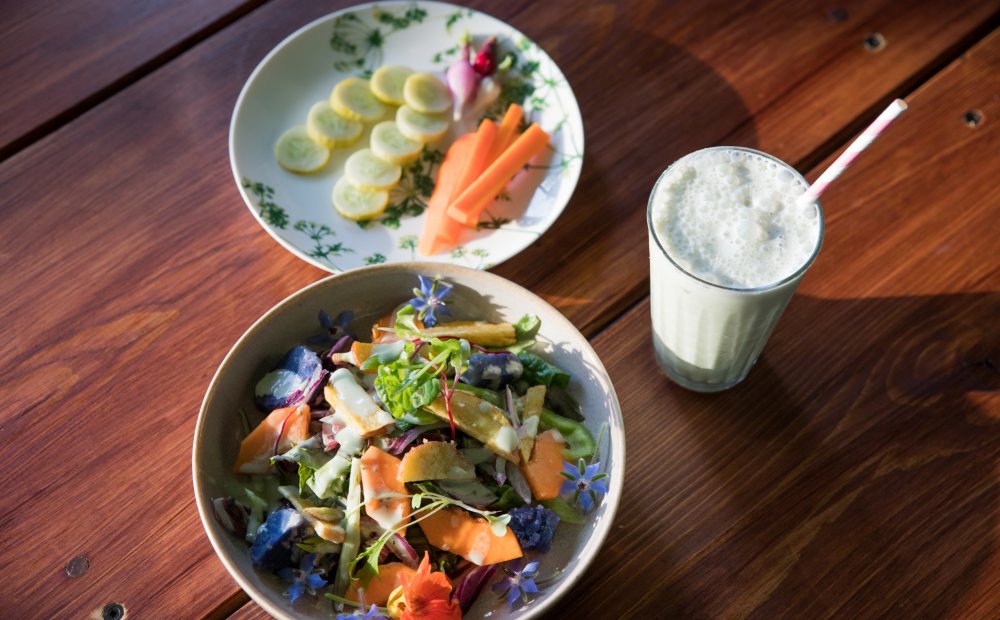 バイク女子がオープンした、カラフルで美味しい島の新鮮野菜が食べられるオシャレなカフェ。 自家菜園や島の農家さんから直接仕入れる野菜は新鮮で美味!メニューに彩りを与えます。