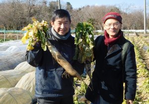 東京特産食材の生産者に会えるお店当店は、良い食材を良い状態で仕入れ、それを店内にて無添加調理することが「おいしい」になると考えています。そのため多くの食材は生産者の所へ足を運び、生産現場を見て、直接お話をお聞きし納得した上で仕入れています。生産者の方と親しいお付き合いをさせていただいた結果、今では普段使いをしてくださる生産者の方もいらっしゃいます。また、生産者の方と交流できる人気イベント「あじなお居酒屋day」を月1回行うことで、お客様が生産者の方とお会いし、お話をお聞きしたりつながったりできる機会も設けています。店内には《生産者ご紹介パネル》を掲示し、生産者ご紹介動画を放映し、食材に関する様々な情報をお客様に開示しています。(写真は八王子オギプロファーム・福島秀史さん「畑にて」と「あじなお居酒屋dayにて」)