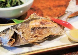 タカベは島を代表する高級魚のひとつで、初夏から夏が旬の白身魚です。脂ののったタカベをシンプルに塩焼きでどうぞ。やわらかい身と、濃厚な甘みのある脂をご堪能ください。新鮮なタカベを皮付きのお刺身でお召し上がりいただくのもおすすめです。
