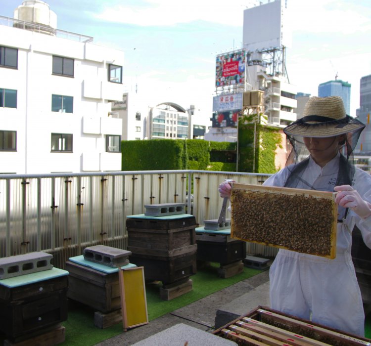 東京では、主に多摩地区や島しょ部の養蜂家が生産していますが、都会ならではの養蜂も行われており、銀座や原宿のビルの屋上に巣箱を置き、近隣の公園などの花木から蜜を集めています。また、農産物を受粉させるために、ミツバチを利用し、採蜜している農家もあります。