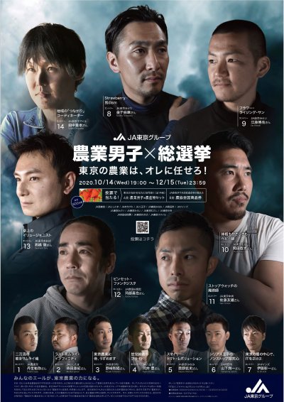 JA東京グループ「農業男子×総選挙 -東京の農業は、オレに任せろ!-」が10月14日(水)19:00から始まります。