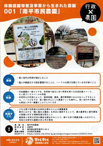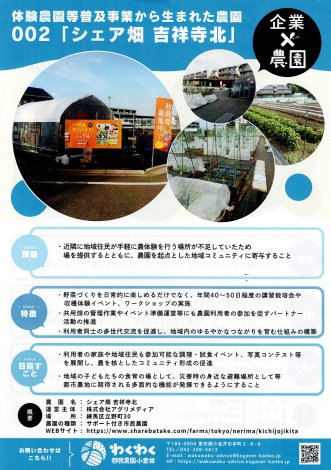 この事業の1号「南平市民農園」(日野市)と2号「シェア畑 吉祥寺北」(練馬区)