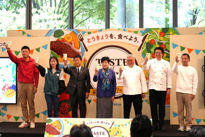 小池知事を中心に、登壇者全員が声を揃えて「東京の食材を楽しみましょう!」と高らかに宣言。報道陣のカメラが一斉にシャッターを切るなか、会場の熱気は最高潮に達し、都心に息づく“東京のテロワール”を体感する3日間の祭典が、いよいよ華やかに幕を開けました。