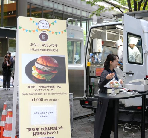 また、会場を彩ったのは東京産食材をふんだんに使ったキッチンカーです。できたてのメニューをその場で味わえる人気スポットとして、多くの来場者で賑わいました。