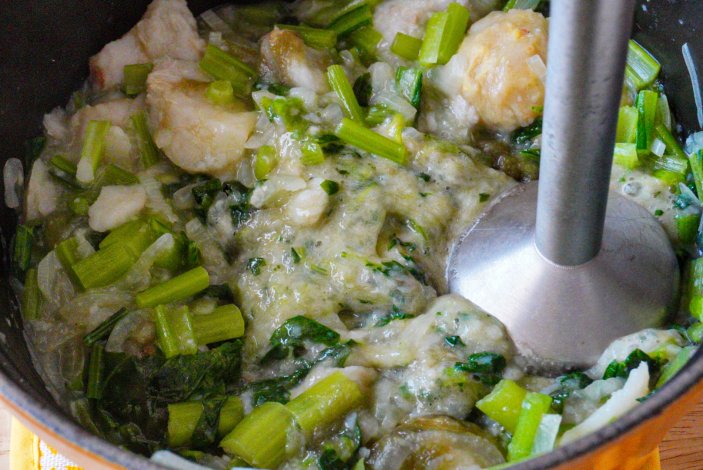 ・火を止め、ハンドブレンダーで全体をなめらかに撹拌する。