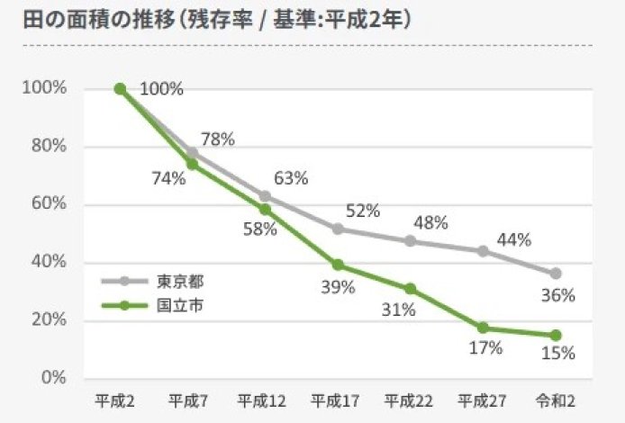 国立市内の水田は激減しており、市の農業振興計画による2026年の推計は3.5ヘクタールですが、「実際はすでに3ヘクタールを切っているのではないか」と小野さんはいいます。
